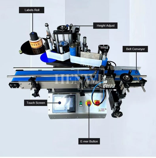 Henwi HWLM-R Automatic Round Bottle Jar Labeller Machine Self-Adhesive Sticker Labeling Machine