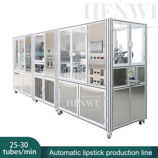 Henwi HWKH-Full Automatic Lipstick Production Line Lipstick Preheating Filling Chilling Demoulding Screwing Back Machine Line All In One Line