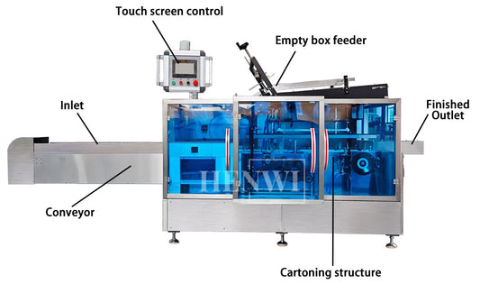 Henwi HWAM-Box Cartoning Machine Plastic Tube Paper Box Case Cream Gel Jar Toothpaste Glass Bottle Blister Boxing Encasing Machine