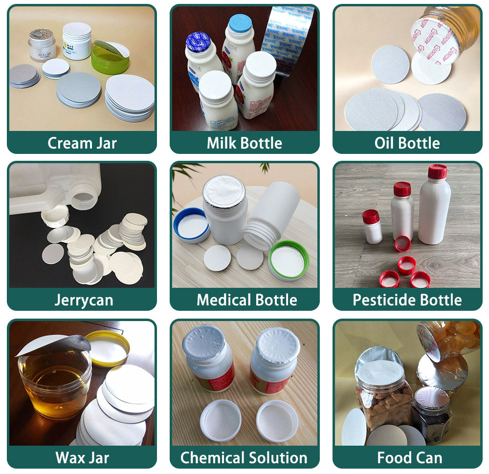 Widely used in food, beverage, grease, daily chemical and other industries. Such as lubricant, milk, pesticide, sauce, paint, gel, nutrition powder,etc. This machine adopts the principle of electromagnetic induction heating. Through non-contact induction heating, the aluminum foil instantly melts the adhesive layer of the sealing film at high temperature.