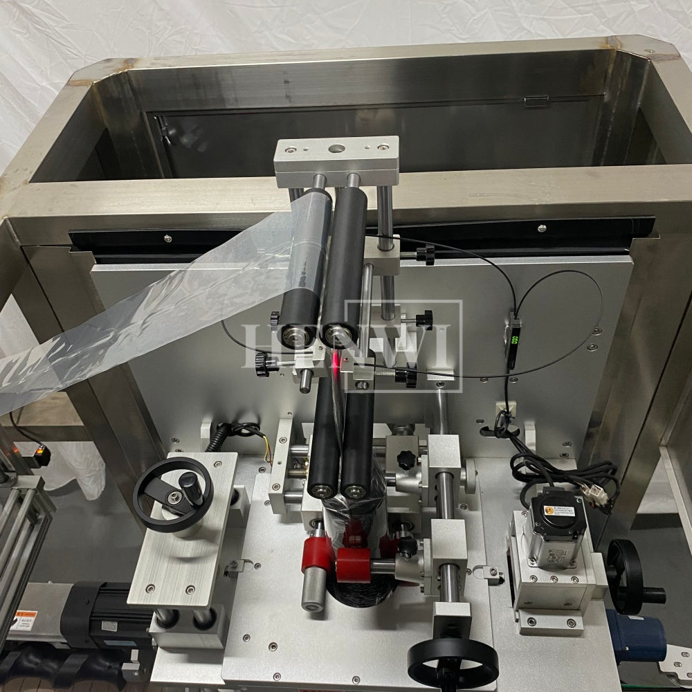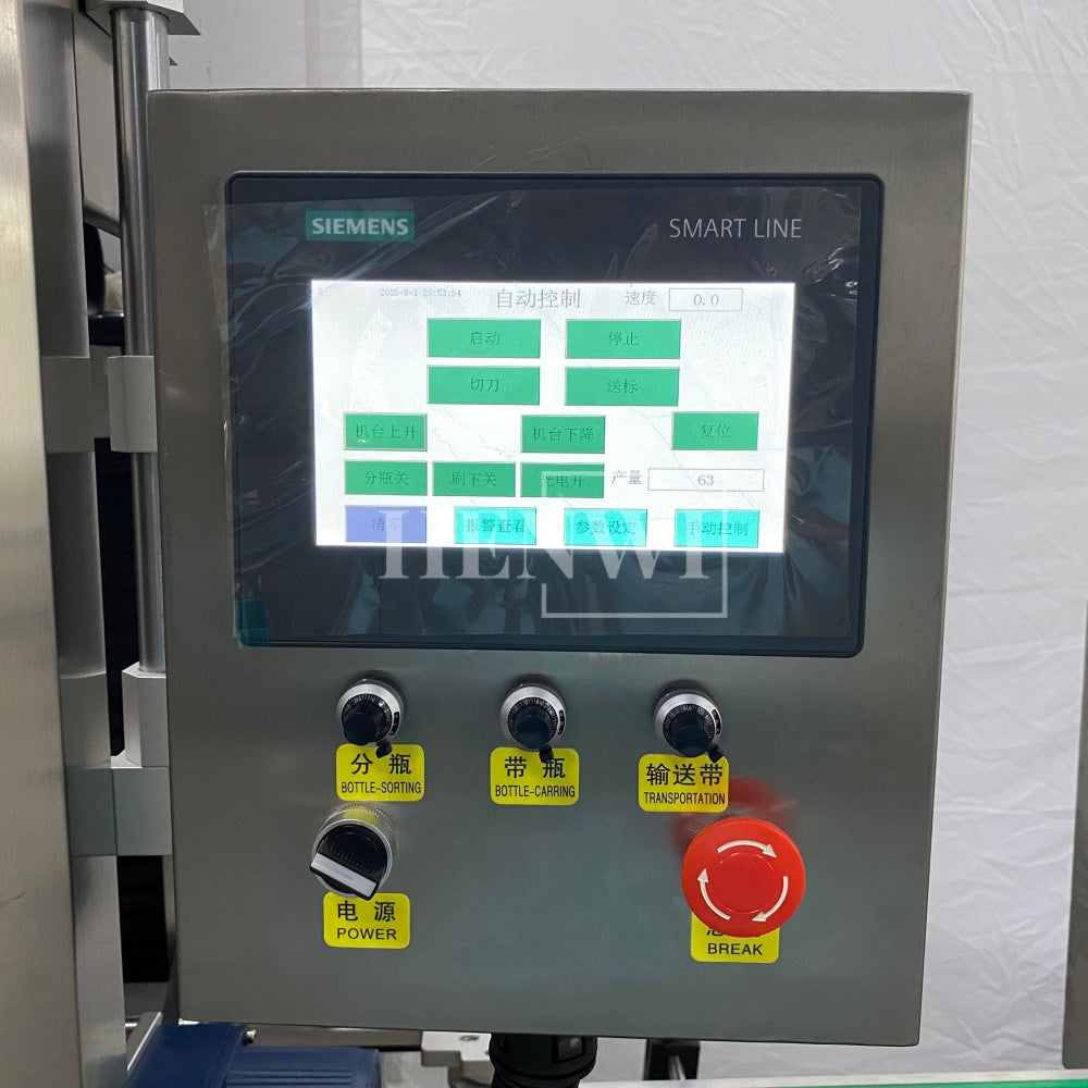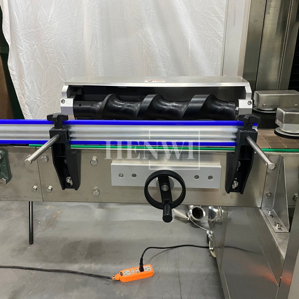 Henwi HWLM-Bottle Sleeve Dropping Wrapping Shrinking Machine Plastic Glass Beer Bottle Jar Pop Can Tin Sleeve Labeling Steam Shrinking Machine