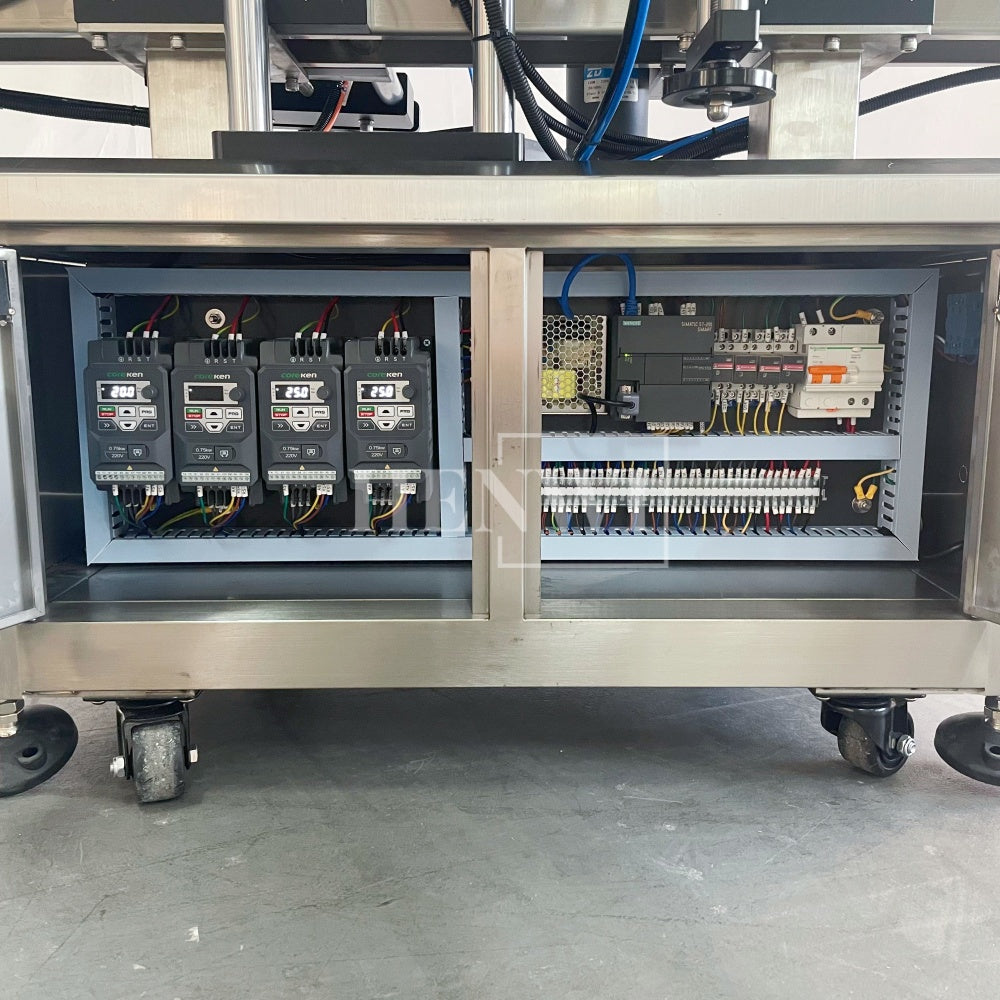 And it can work with filling machine and capping machine as a production line to pack powder/liquid cosmetics & food & pharmaceutical & chemical products.