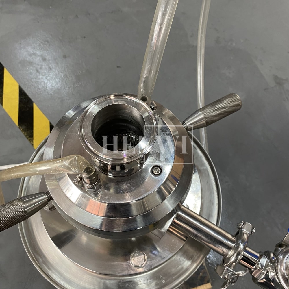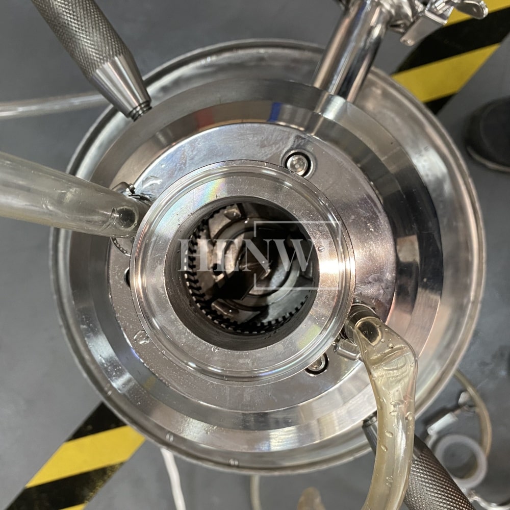 Один из них вращается с высокой скоростью, а другой неподвижен. Материалы, проходящие через наклонные поверхности зубьев, подвергаются большим сдвиговым и третельным силам. В то же время под действием сложных сил, таких как высокочастотная вибрация и высокоскоростной вихрь, материалы измельчаются, эмульгируются, дробятся, гомогенизируются и смешиваются, тем самым получая мелкие и сверхмелкие преимущества.